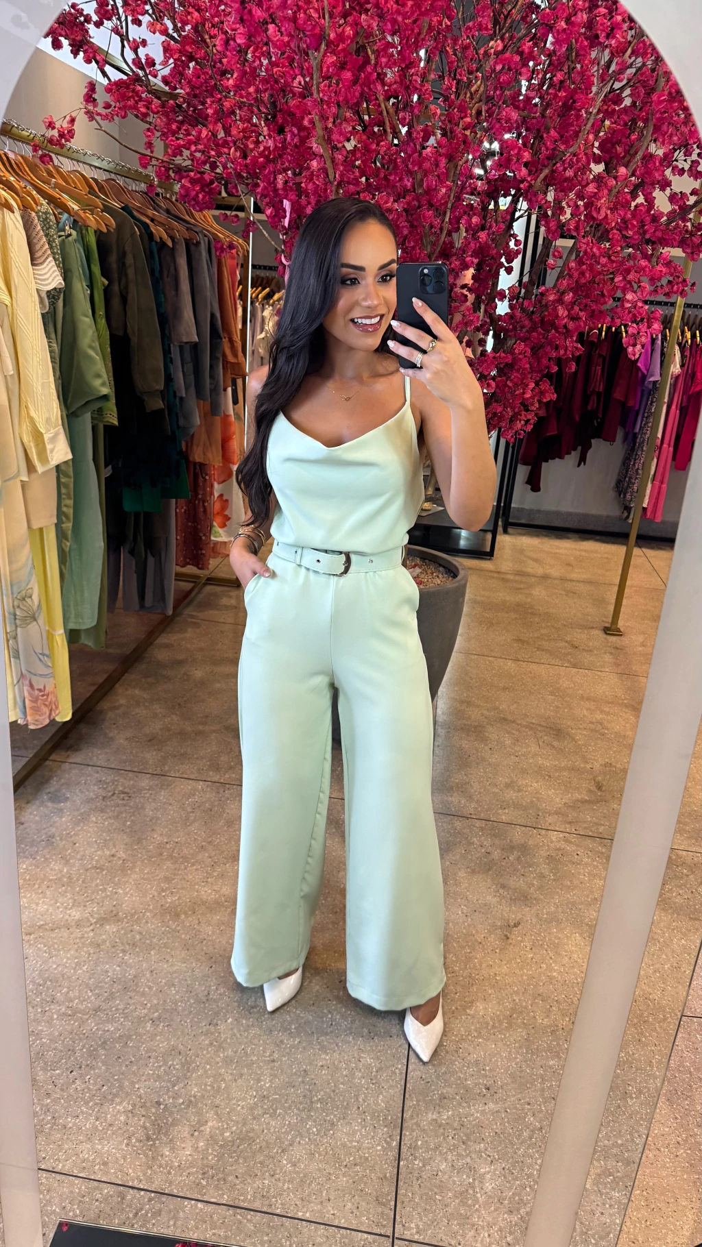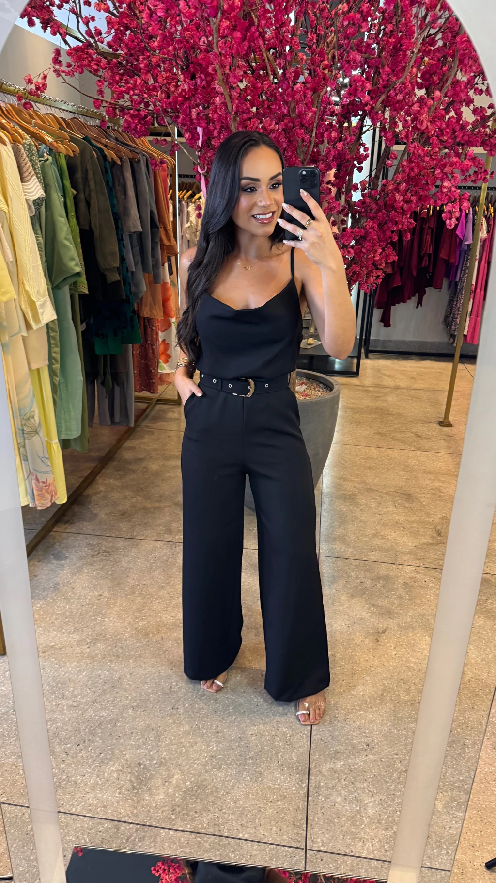 Macacão em tecido de alfaiataria zíper nas costas alcinha com regulagem.