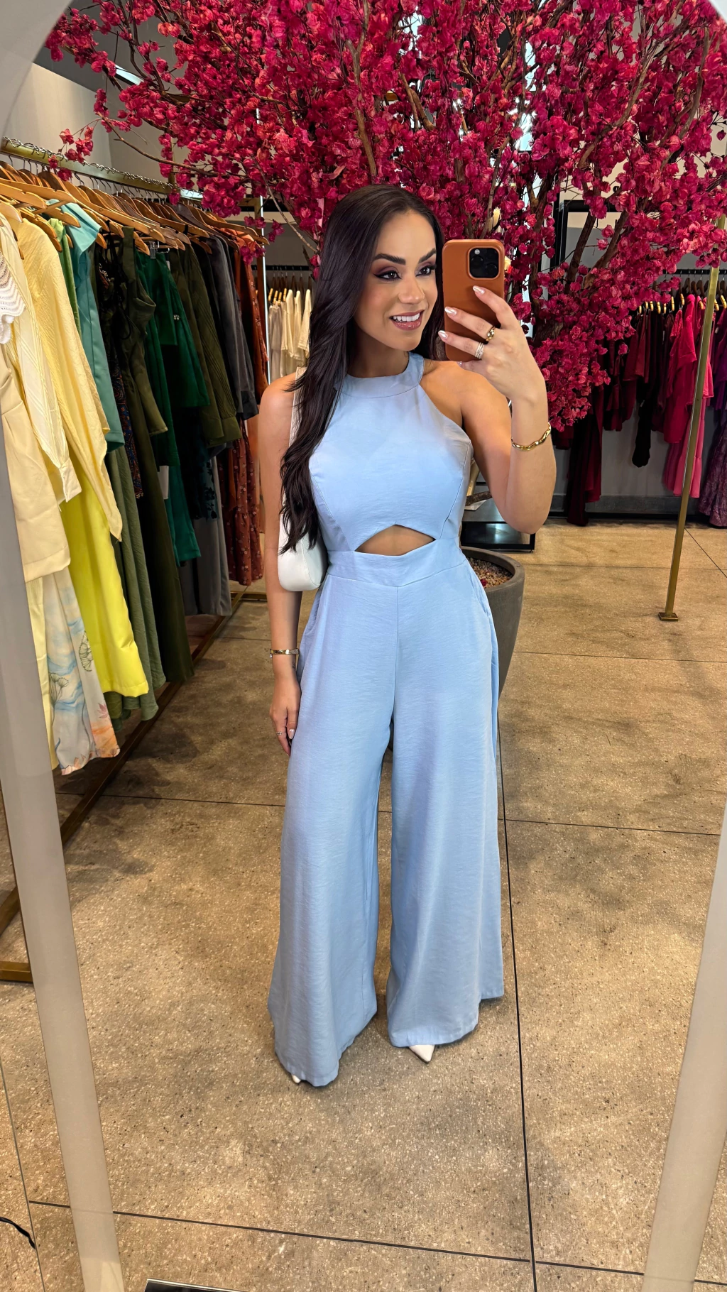 Macacão pantalona com bojo e amarração tecido alfaiataria marrant veste do 36 ao 42