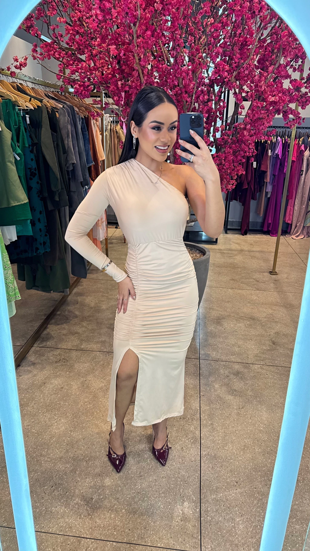 Vestido em tecido fluity duplo nula manga